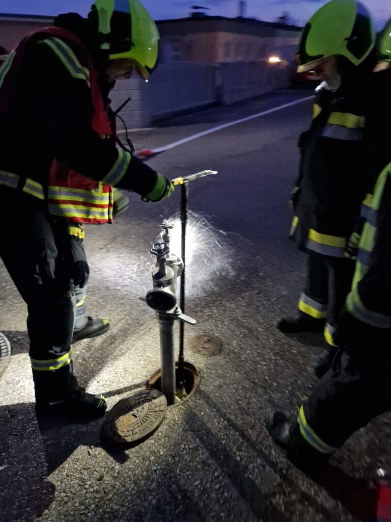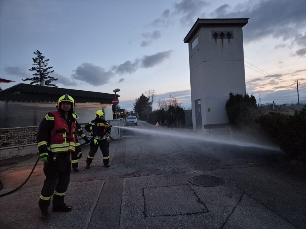 Brand eines Transformators mit Flurbrand in der Umgebung. Anfahrt erschwert durch enge Platzverhältnisse – Zufahrt entgegen der Einbahnstraße. Zwei Atemschutztrupps im Einsatz mit HD-Schnellangriff zum Schutz der Umgebung, während die Stromabschaltung durch Wiener Netze vorbereitet wurde. Parallel Aufbau einer Versorgungsleitung über Unterflurhydrant.