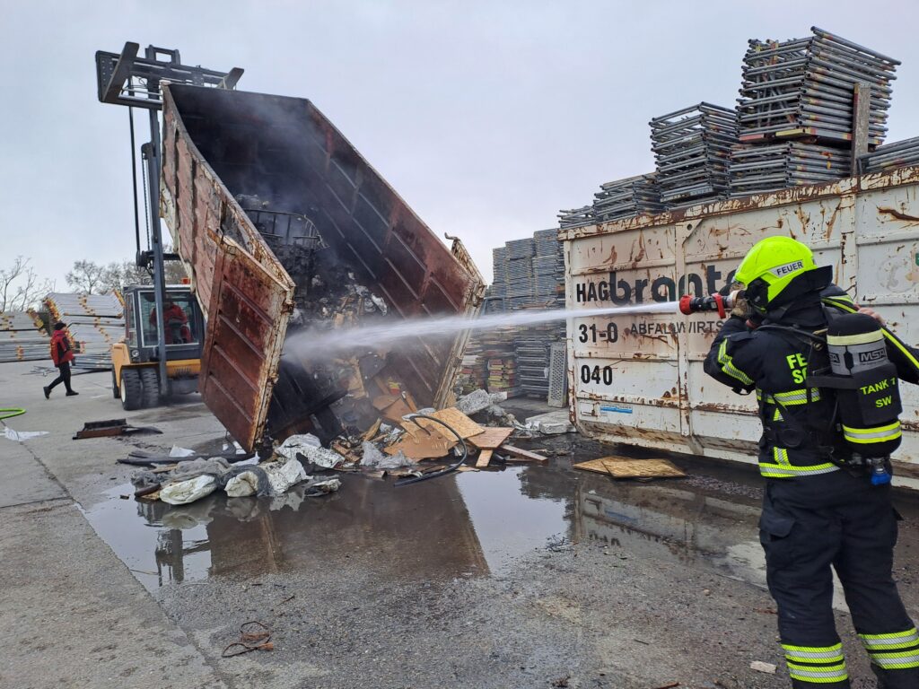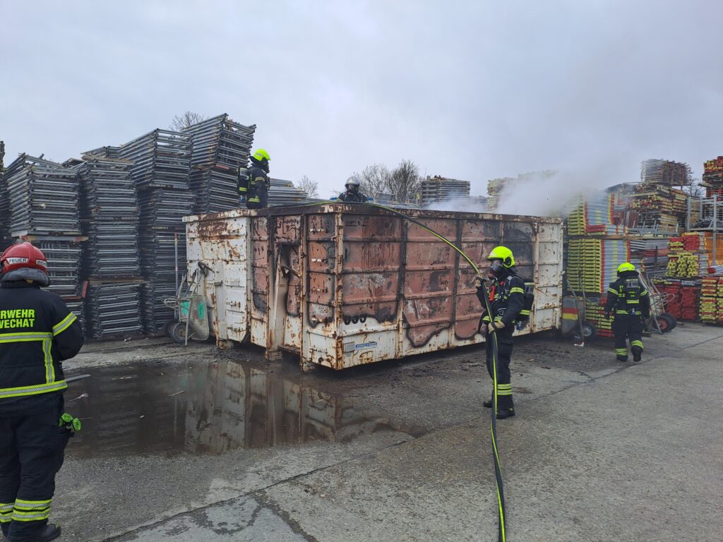 Vor Ort stellte sich heraus, dass ein Container mit Sperrmüll in Brand geraten war. Seitens der Feuerwehr Pellendorf standen 10 Kameraden im Einsatz, wobei ein Atemschutztrupp gestellt wurde.